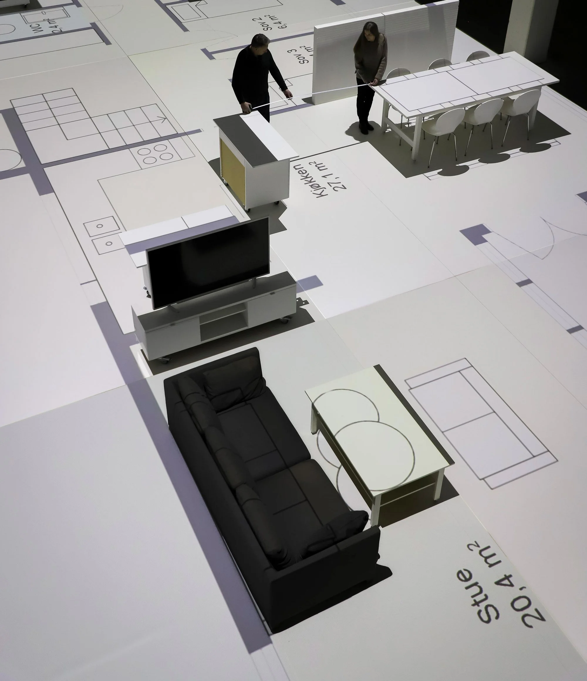 TIPS WALK projekterer dine plantegninger i 1:1 format på gulv. Få bedre forståelse for hvordan sluttresultatet vil bli.